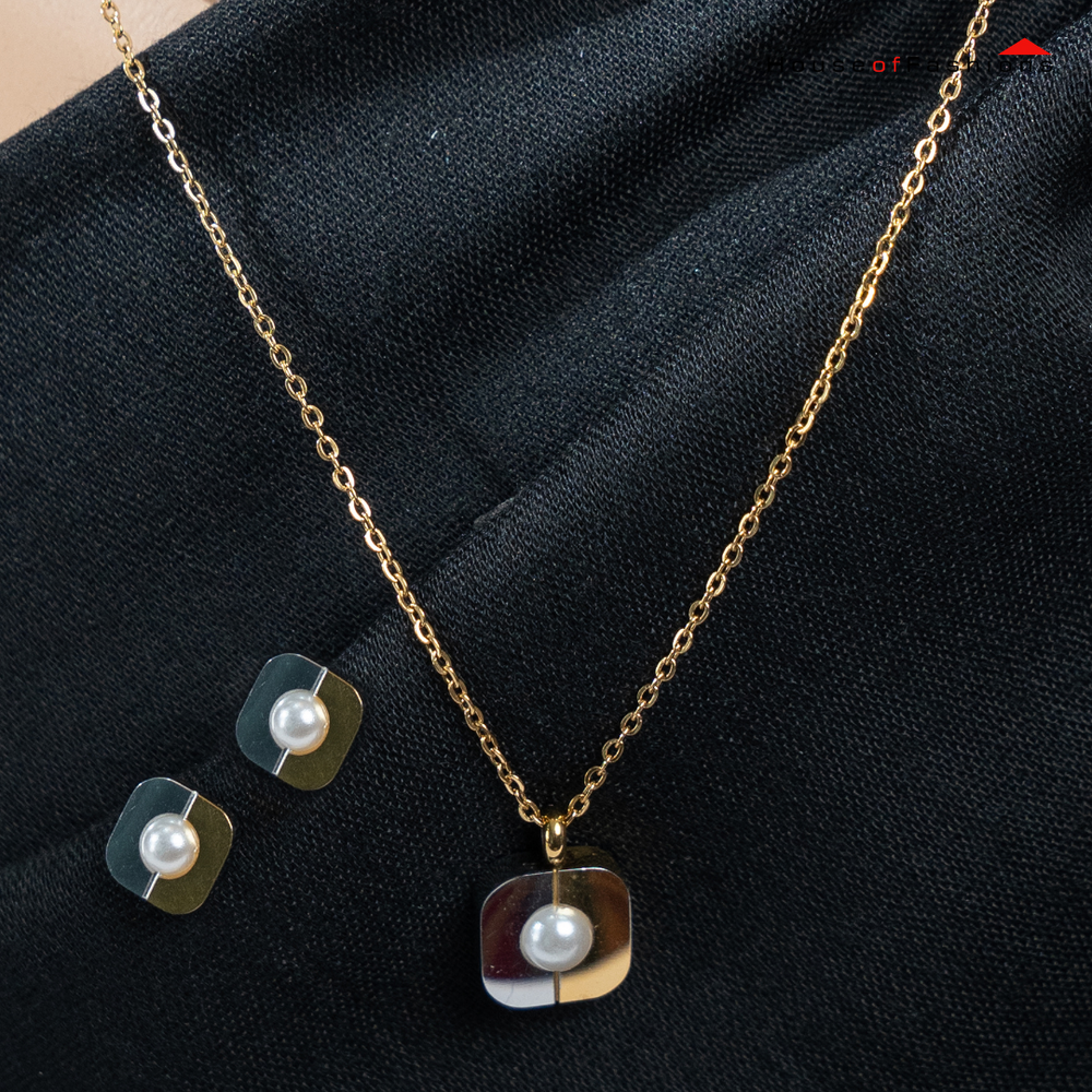 Women's Elegant Necklace & Earrings Black White Stainless Steel Shell Jewelry Set for Women