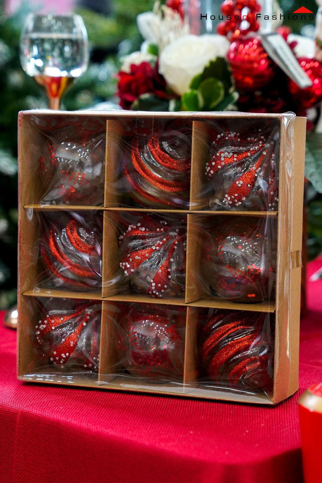 Red Glitter Swirl Christmas Ball Ornament Set – 9-Piece Festive Decorations | House of Fashions Sri Lanka