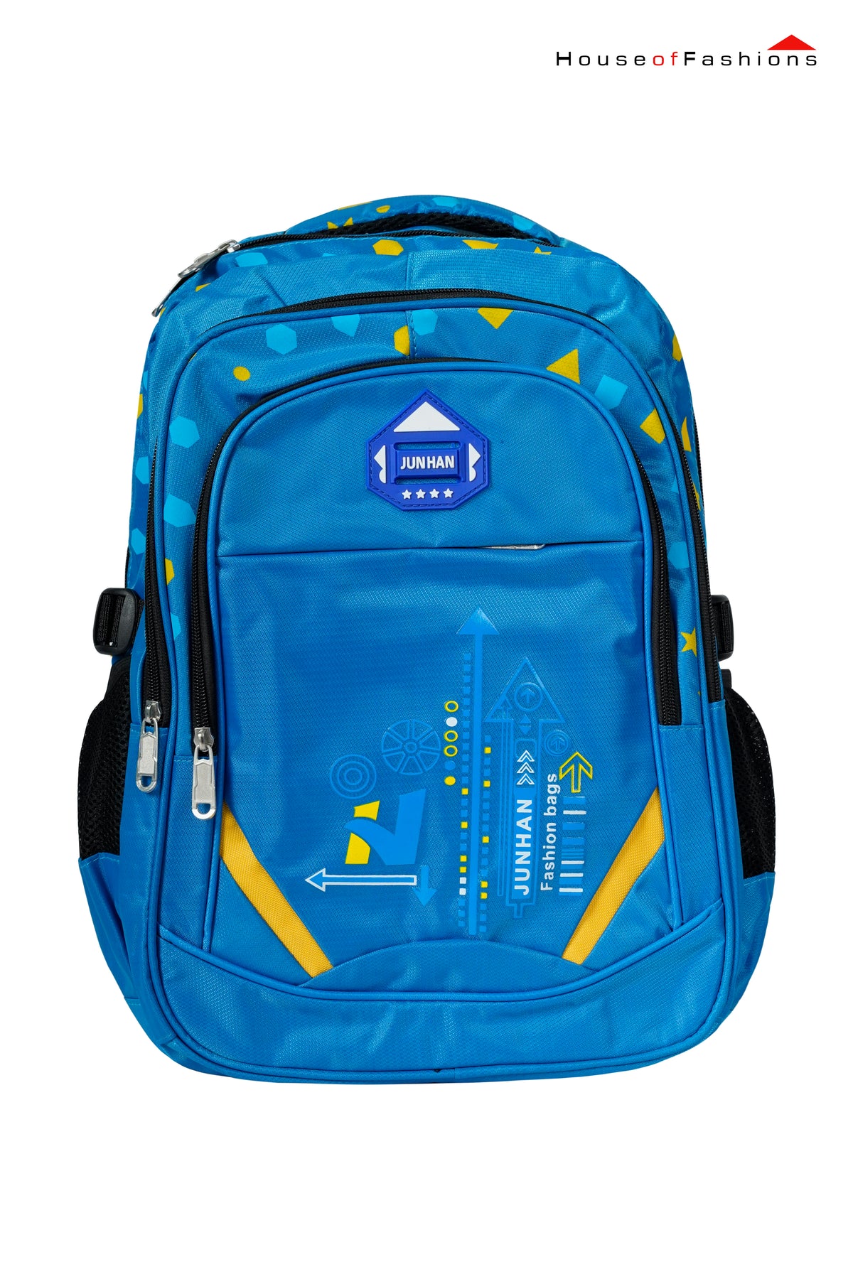 Gear up for the school year with the JUNHAN Blue Tech Explorer School Backpack — built for curious minds and creative learners. This stylish bag features a bold royal blue base with yellow and orange geometric arrow and gear motifs that spark imagination and energy. Designed with comfort and practicality in mind, it includes multiple zippered compartments, a front utility pocket, and side mesh holders for water bottles. The padded shoulder straps and back panel ensure comfortable wear throughout the day, while the durable material keeps belongings safe in any school adventure.
